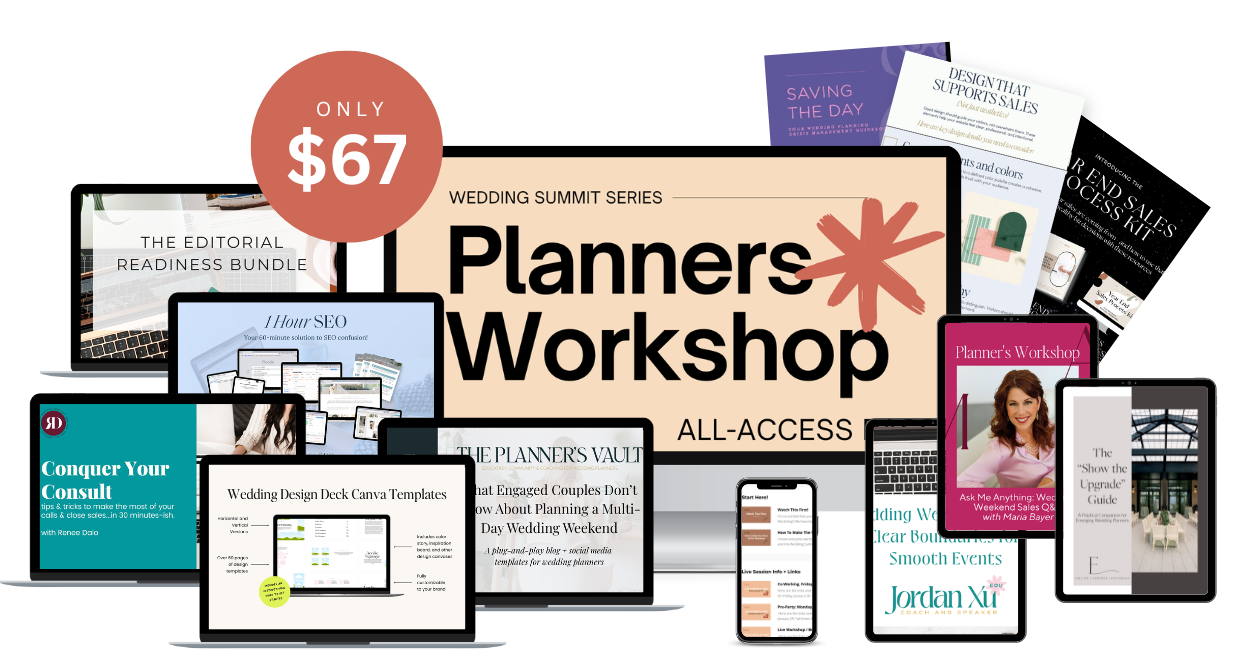 The 2026 Planners Workshop is built for wedding planners who want to elevate how they market, sell, and position themselves for better bookings — not just more inquiries.
