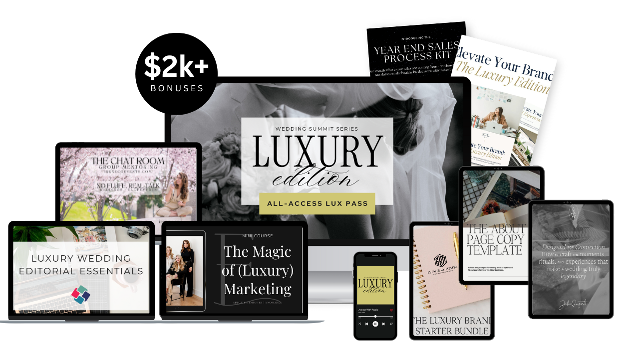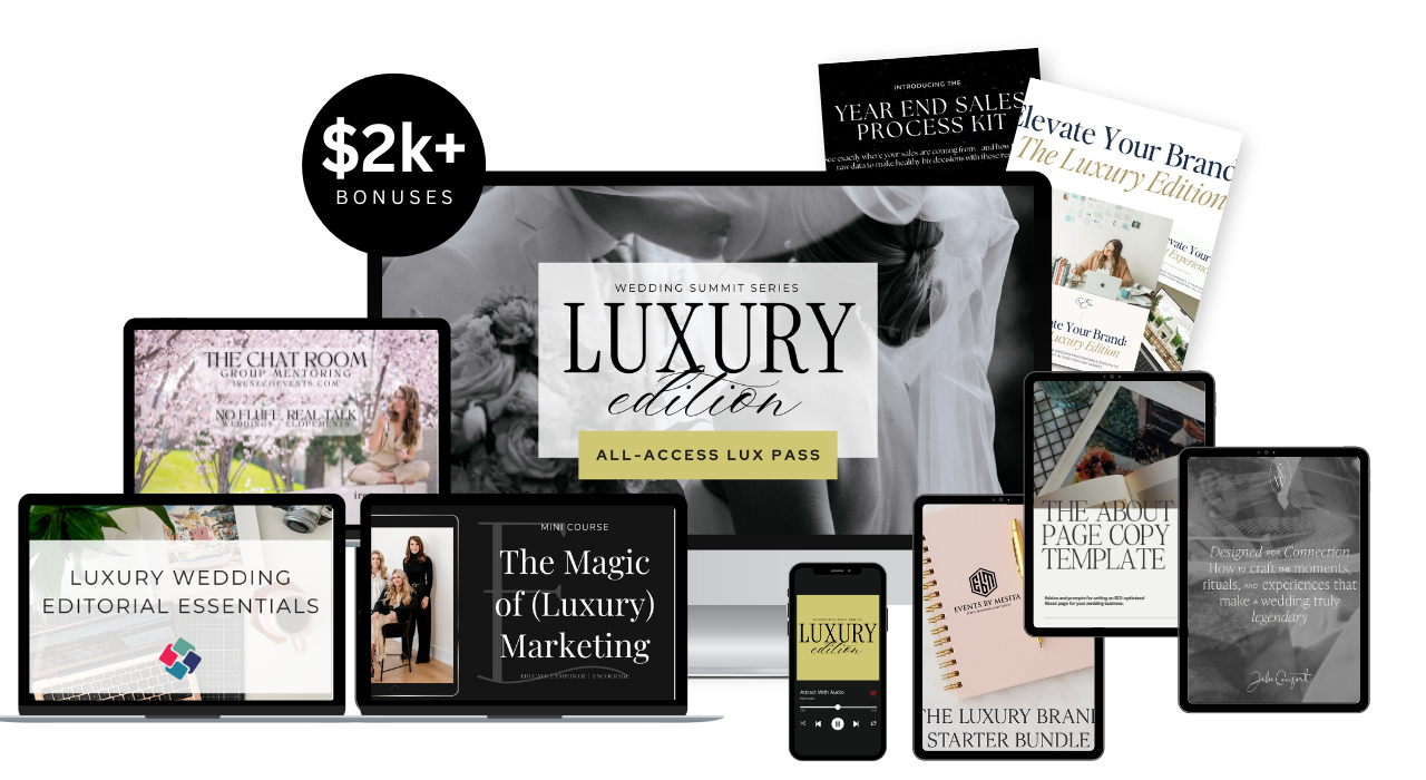 That’s exactly what this summit is about. I’ve gathered some of the best luxury wedding pros and educators to share their insights so you can stop feeling like an outsider and start elevating your brand, pricing, and client experience with confidence.