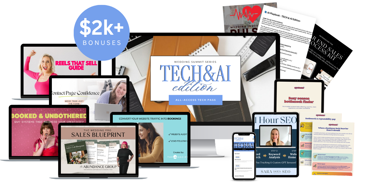 I’m constantly tracking what’s actually changing in the industry, including how technology and AI are shaping the way wedding businesses market, sell, communicate, and operate behind the scenes.